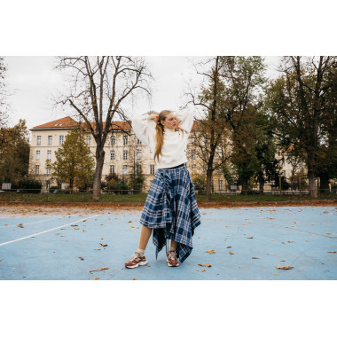 - Për një veshje më sportive, i kombinoj ato me një palë tuta dhe një xhup sportiv – dhe nuk ka të bëjë vetëm me pamjen: rehatia dhe stabiliteti më lejojnë të eci në qytet për orë të tëra ose mund të bëj një stërvitje të lehtë pa asnjë shqetësim.