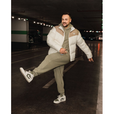 Vendosa ta çoja një nivel më lart duke e kombinuar me hoodie dhe tuta Jordan pothuajse të së njëjtës nuancë. Për ta thyer pak monokromin shtova xhupin North Face, ku e bardha dhe bezha krijojnë harmoni perfekte me të gjithë look-un. Kur ngjyrat lidhen kaq mirë mes tyre, edhe një outfit i thjeshtë duket sikur është përgatitur posaçërisht për një photoshooting.