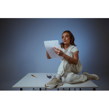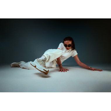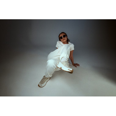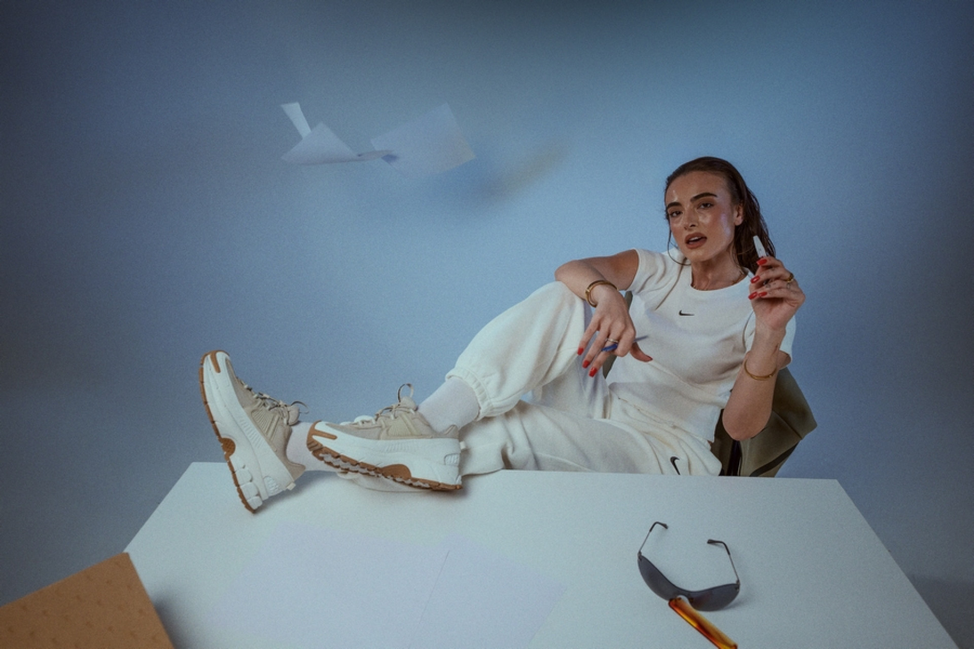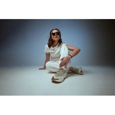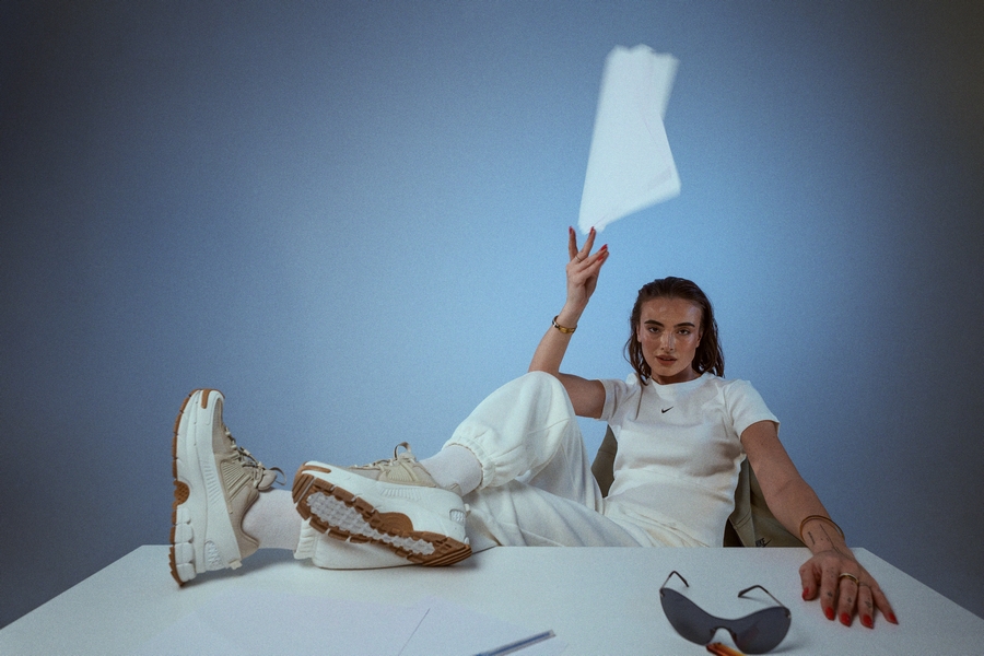 Studioja na dha lirinë për të luajtur me poza, dritë dhe lëvizje. Tavolina e vogël nuk ishte vetëm një objekt në skenar, por një kontrast - një moment pune i shkrirë me energjinë e modës. Pikërisht këtu NIKE ZOOM VOMERO ROAM tregojnë se sa pa mundim përshtaten: nga një ditë aktive në një pamje të stiluar me kujdes, pa humbur kurrë karakterin e tyre.